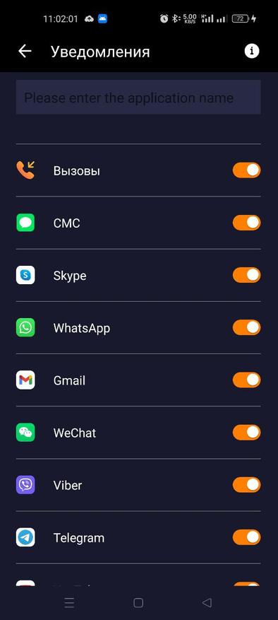 Присутствует активация режима для телефонных разговоров, включения режима «полета», установка пароля, таймер, секундомер, яркость и переход в более углубленные настройки.