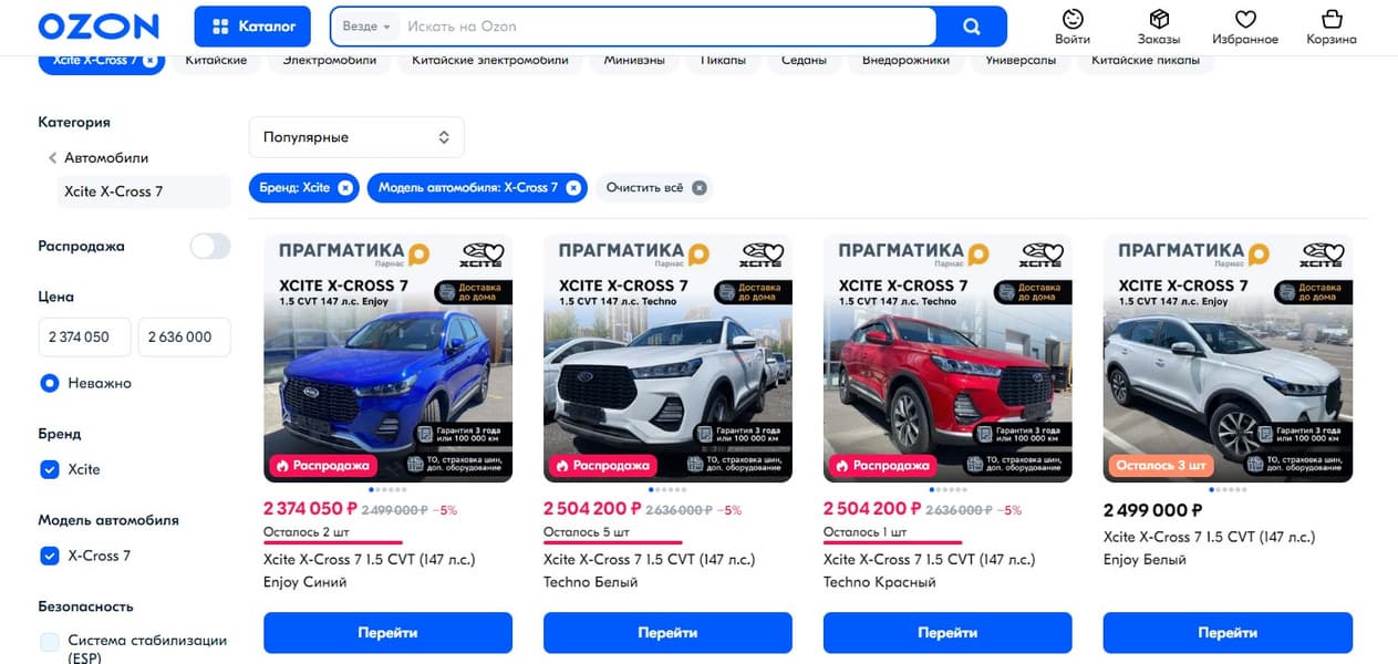 Всего на маркетплейсе Ozon представлено уже 37 автобрендов. С момента появления такой услуги покупатели заказали более 570 машин. Чаще всего автомобили покупают жители Москвы, Подмосковья и Санкт-Петербурга.