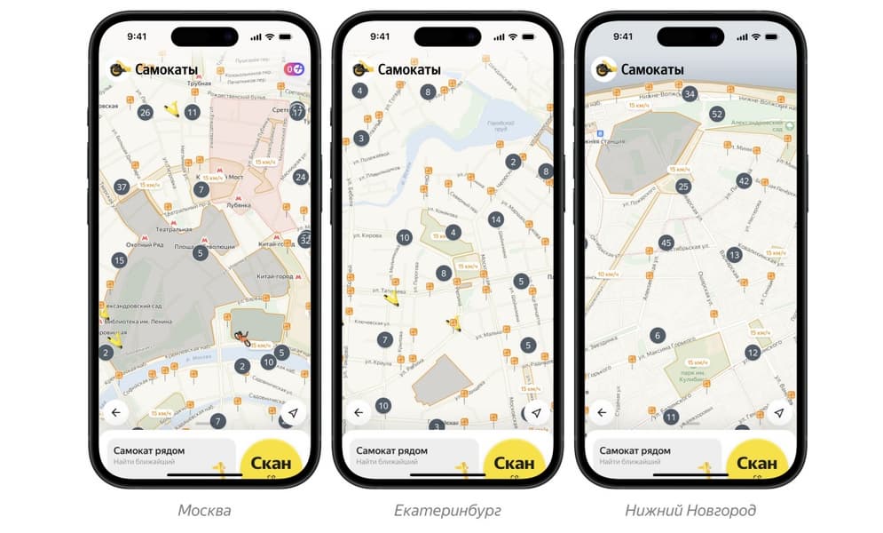 Яндекс также увеличил количество медленных и запретных зон в местах, где обычное движение на самокате может быть небезопасно. Сейчас в приложении размечено 1300 медленных зон, где скорость самоката ограничена, и 300 зон, где поездки запрещены. Это на 20% больше, чем в прошлом году. В 2024 году в «Яндекс Картах» маршрут на самокате начал строиться с учётом медленных и запретных зон. Кроме того, в случае погодных аномалий — сильного дождя, смерча, урагана — приложение предупредит об этом, также будет принудительно снижена скорость самокатов или даже временно ограничен доступ к сервису.