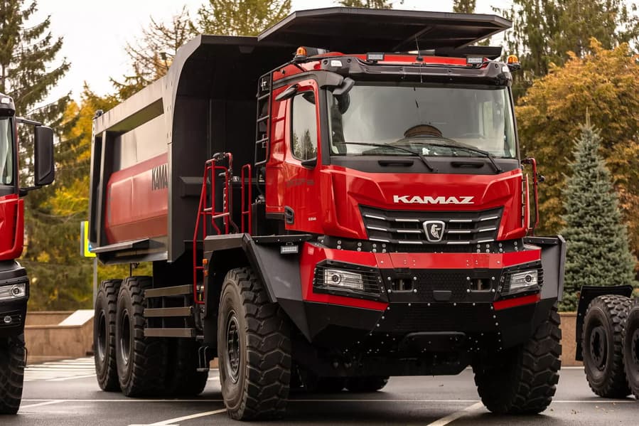 На экспозиции в преддверии саммита БРИКС, который пройдет в Казани 22-24 октября, КамАЗ представил актуальную линейку грузовиков, в число которых вошел новейший «Атлант-65». Это самый большой самосвал КамАЗ: грузоподъемность составляет 65 тонн (на 10 тонн больше, чем у БелАЗа-7555), а полная масса достигает 95 тонн. При этом из-за больших габаритов (ширины и высоты) машина не может передвигаться по дорогам общего пользования.