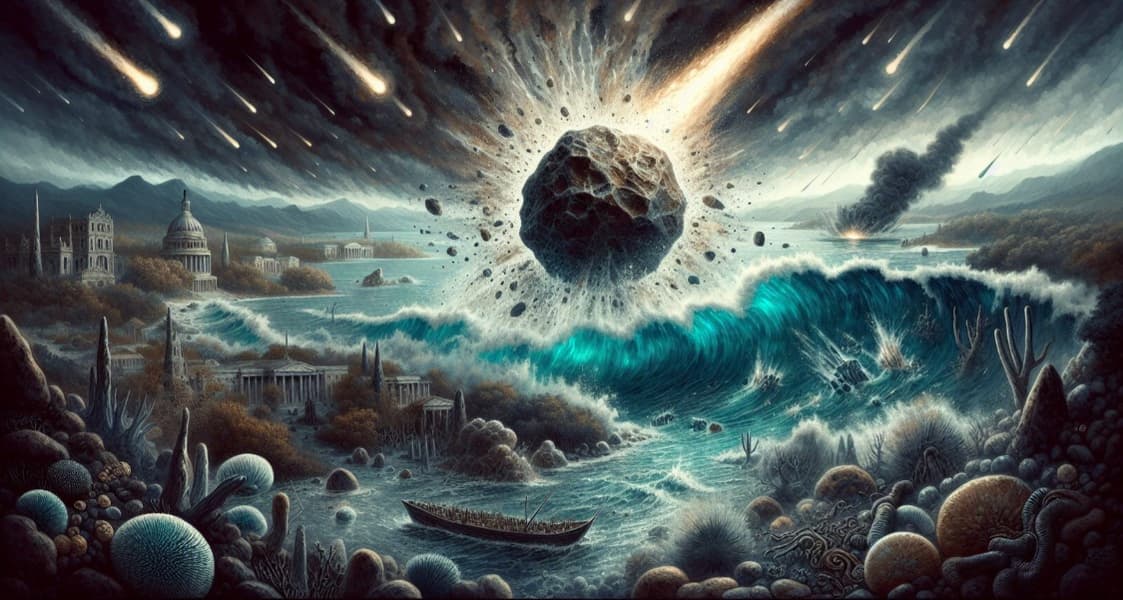 Метеорит S2 вызвал цунами которое выбросило объекты с суши в прибрежные районы. Тепло от удара заставило верхний слой океана выкипеть, а также нагрело атмосферу. Густое облако пыли накрыло регион, остановив фотосинтетическую активность.