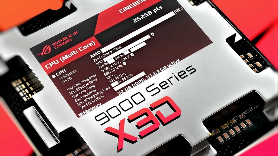 Похоже, AMD собирается сделать Ryzen 7 9800X3D заметно быстрее обычного Ryzen 7 9700X и заодно Ryzen 7 7800X3D всеми возможными способами. В том числе очень высокой частотой.