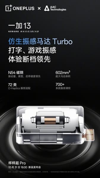 Ещё одной особенностью OnePlus 13 станет улучшенный вибромотор, обеспечивающий «4D-вибрацию на уровне контроллера» в играх для более реалистичного тактильного отклика. Объём вибромотора составит 602 кубических мм, он обеспечит 72 типа тактильной обратной связи. Заявлено, что это будет самый большой из когда-либо использовавшихся в Android-смартфонах вибромоторов.