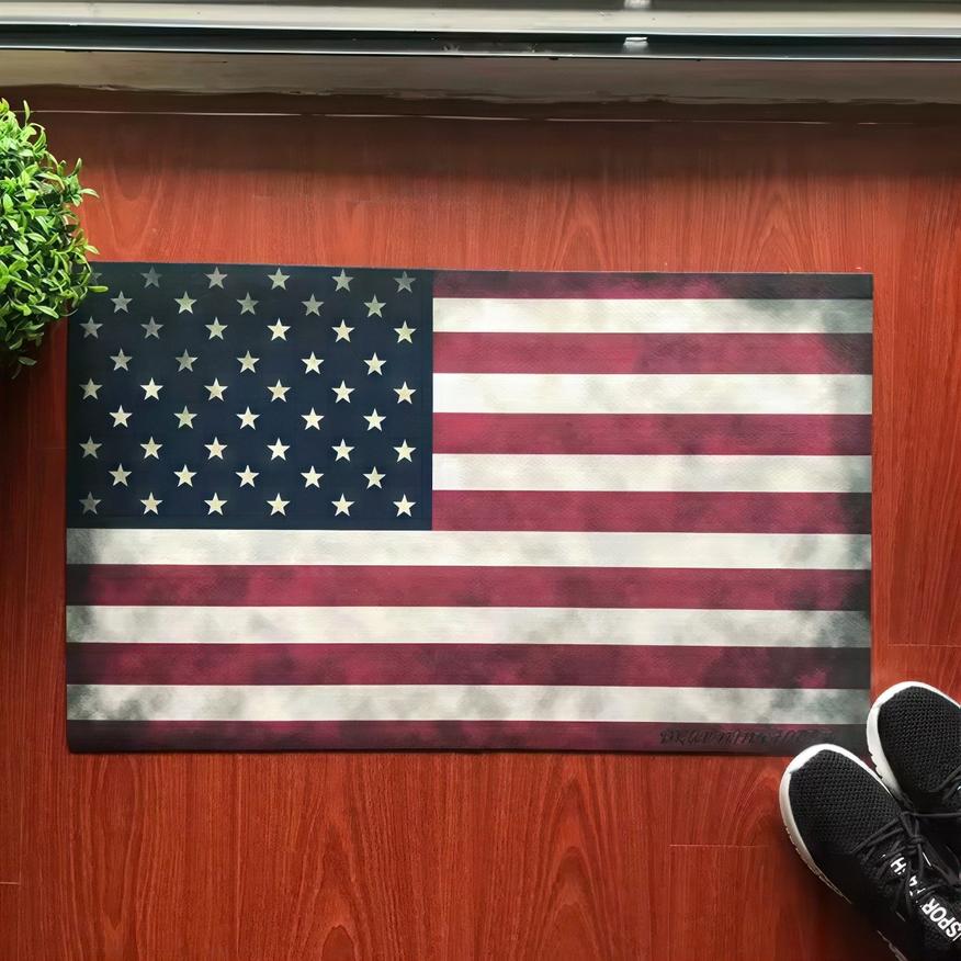 Хотите устроить небольшую политическую провокацию прямо у себя под дверью? Тогда коврик с принтом американского флага — именно то, что вам нужно! Этот шедевр дизайнерской мысли доступен в двух размерах — 40x60 и 45x70 см.