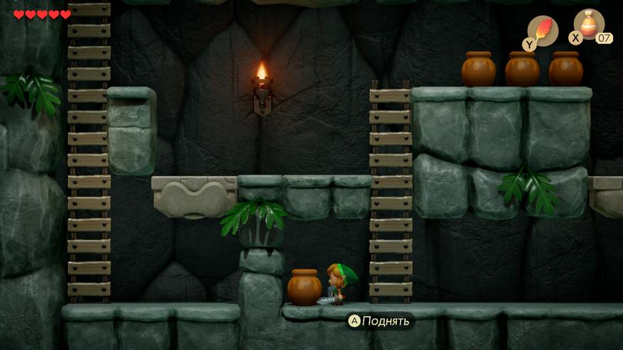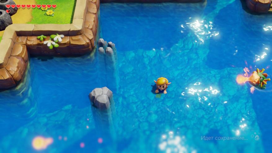 Аналогичная ситуация и с водой, предметы на дне, в случае портатива, не особо видно. Этот момент значительно улучшили в Echoes of Wisdom. Поработали и над производительностью. В доке мой Switch OLED давал плавную и четкую картинку со стабильными 60 FPS, а вот лежа на диване Link's Awakening частенько просаживался по кадрам. Не критично, конечно, но очень заметно.