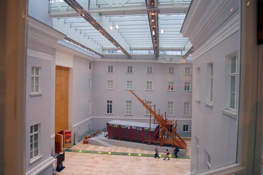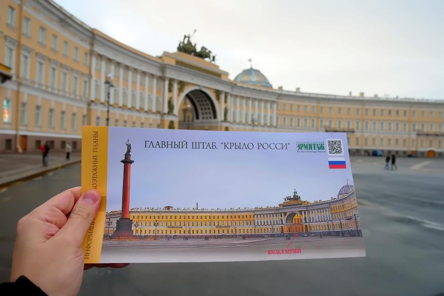 «Крыло Росси» занимает четыре этажа. На первом расположены кассы и вход в музей. Кстати, вход в музей расположен непосредственно внутри триумфальной арки. Десятки раз я проходил через эту арку и никогда не задумывался о том, что вход в Эрмитаж гораздо ближе, чем кажется. Стоимость взрослого билета для граждан РФ — 500 рублей. Дети до 18 лет — бесплатно.