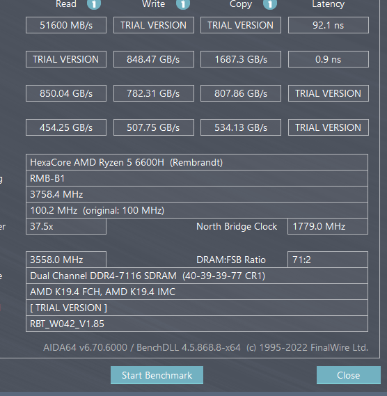В AIDA64 тесты памяти показали скорость чтения на уровне 51600 МБ/с, записи — 55162 МБ/с и копирования — 55647 МБ/с. Высокая пропускная способность оперативной памяти DDR5 способствует плавной работе системы и минимизации задержек при переключении между задачами.