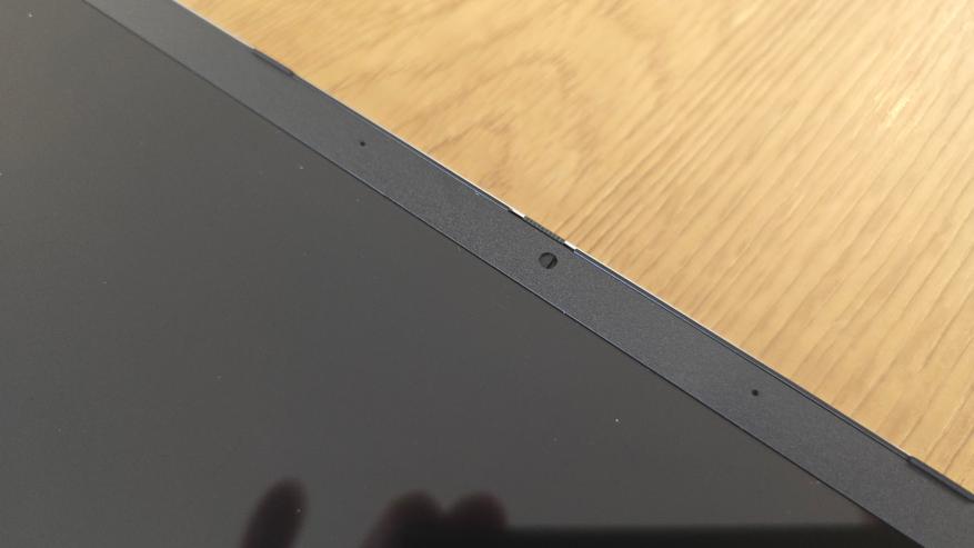 Дисплей устройства имеет диагональ 15.6 дюйма, обрамлен сравнительно узкими рамками. Верхняя часть рамки оснащена встроенной камерой с механическим закрывающим механизмом для повышения конфиденциальности.