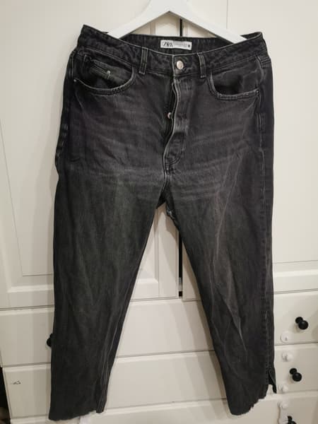 Последней вещью были темные джинсы из плотной ткани. После стирки они обычно выглядят так, как будто их кто-то пытался съесть, поэтому разглаживание заломов и крупных складок им точно должно пойти на пользу.