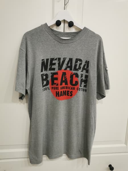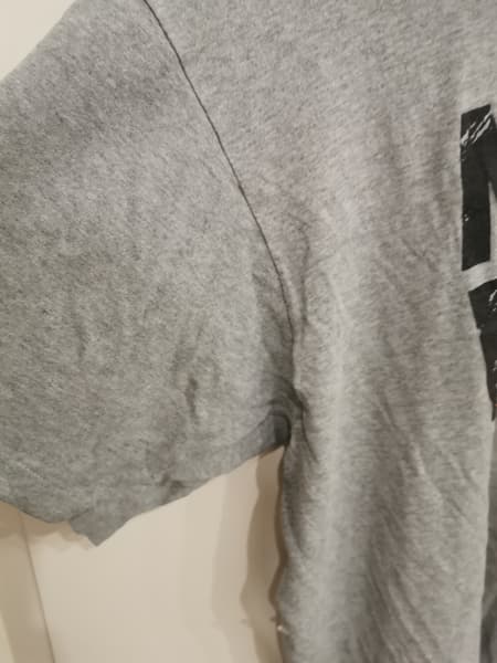 Следом мы взяли хлопковую футболку с принтом и растянутым воротом.