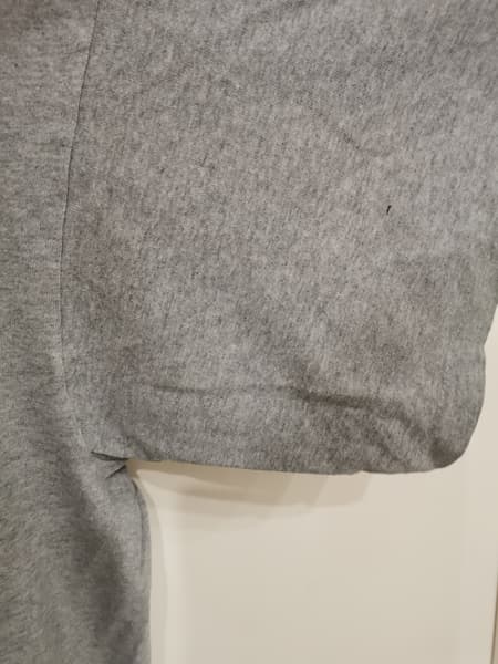 Ворот футболки, конечно, стал выглядеть аккуратней, но заметно собрать его нам не удалось — впрочем, для этого есть утюг. Сама работа отпаривателя заключалась в выравнивании висящей ткани, и с этим он справился на ура.