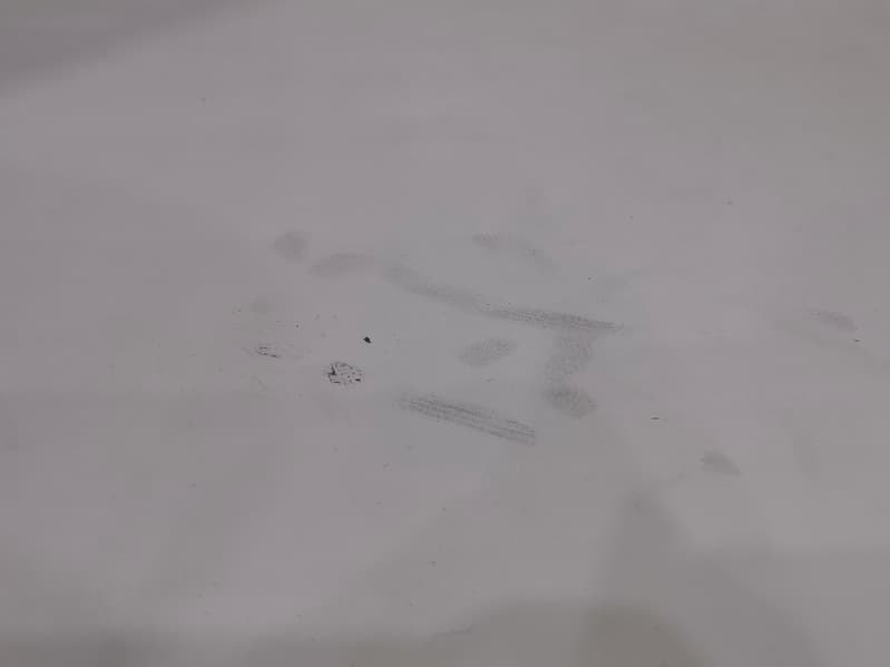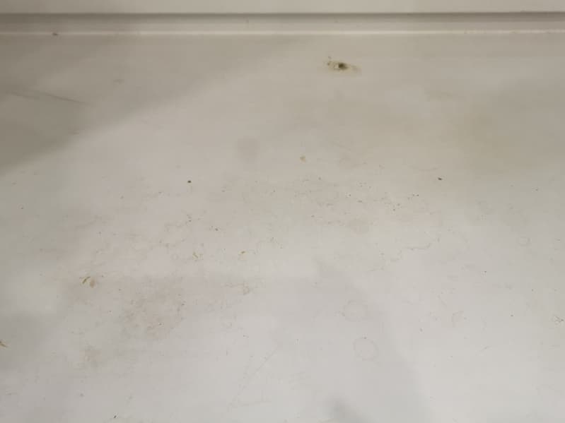 Мы вновь забыли о свойствах ножек и не подложили под них защиту поверхности, поэтому были награждены нестираемыми следами. Этот недостаток под конец тестирования нас начал по-настоящему раздражать. Мы успели испачкать подоконник, белый стул (при отпаривании одежды), раковину, ванну и столешницу. И почти каждое из этих мест приходилось оттирать долго, усердно и почти безрезультатно.