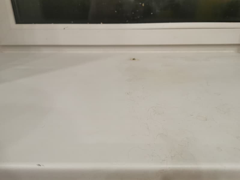 На середине пути по очистке подоконника мы решили сделать фотографию двух его половин — чистой и грязной. Разница хоть и не контрастная, но заметная.
