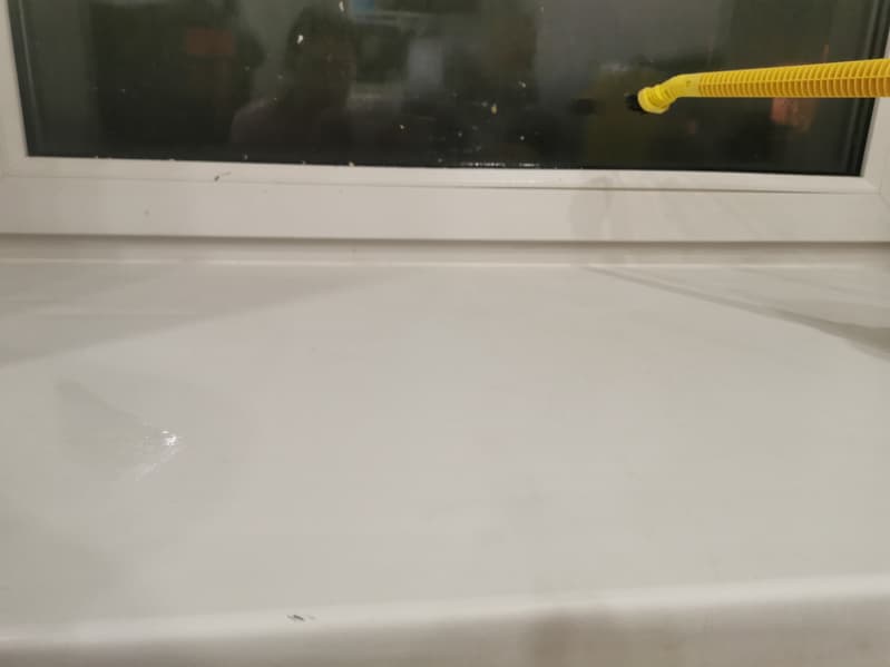 По итогу мы получили чистый и дезинфицированный паром подоконник.