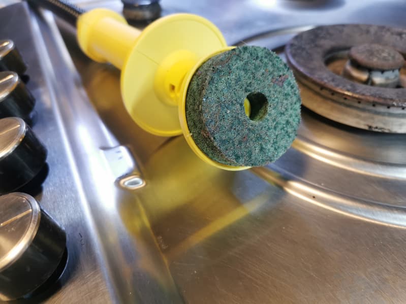 Далее мы взялись за очистку металлических решеток с помощью насадки с щетинками из нержавеющей стали.