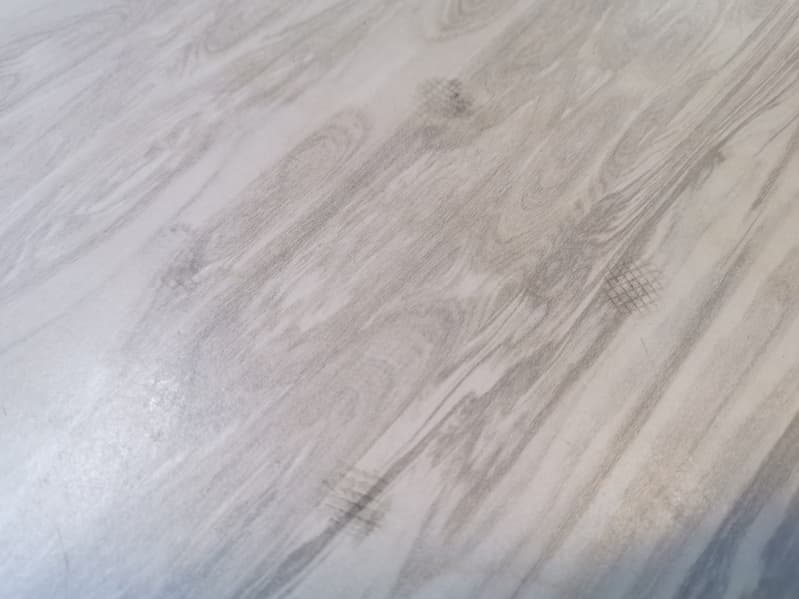 И тут же мы стали замечать странные черные пятна, «проявляющиеся» на поверхности как в фильме ужасов. Не будем томить читателя и сразу объясним причину их появления — некачественный красящий материал резиновых ножек пароочистителя.