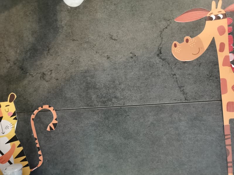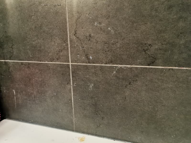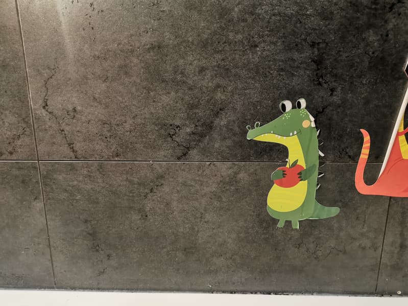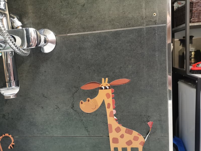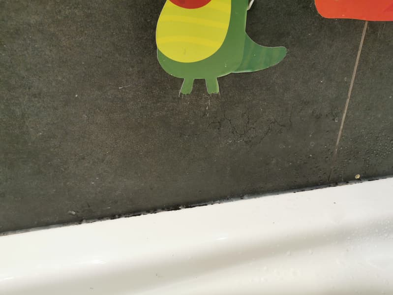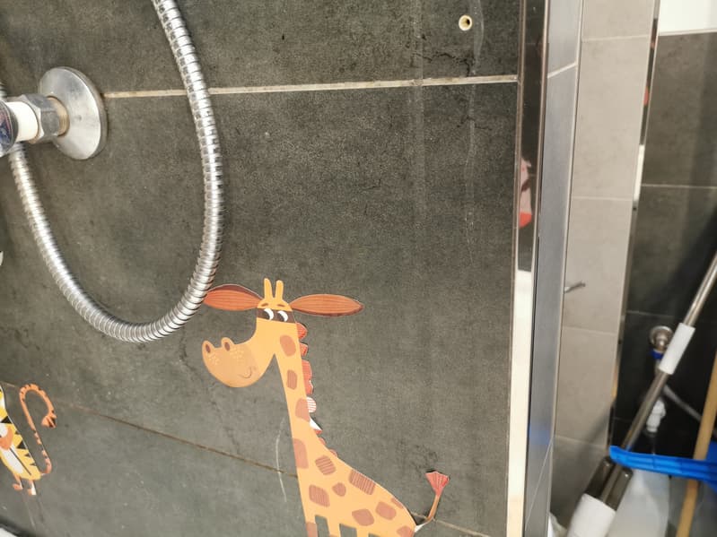 В некоторых местах на кафеле имелись остатки клея от снятых детских наклеек, которые не были зачищены полностью.