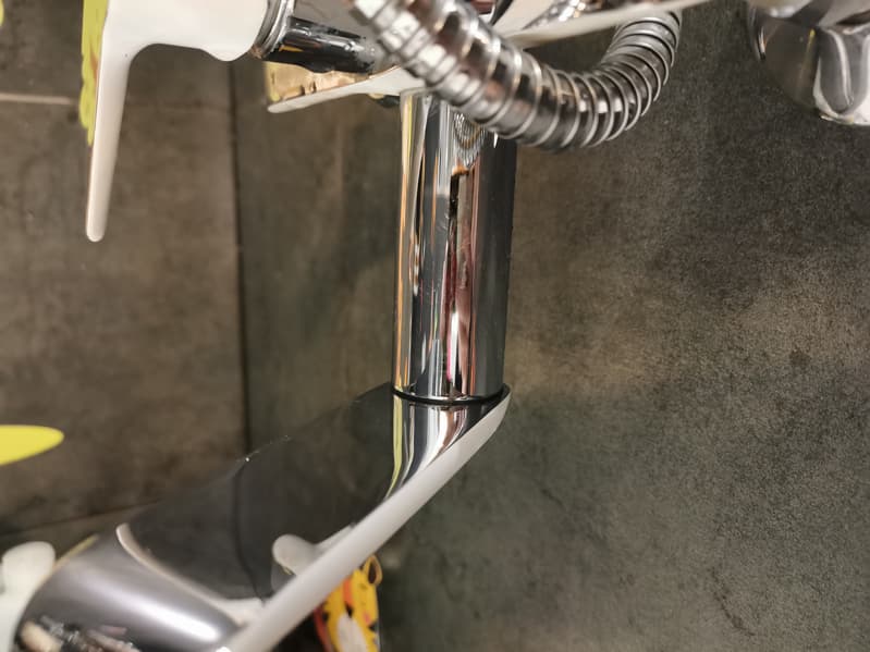 Смеситель и его крепежи тоже нуждались в гигиенической чистке, поэтому мы с рвением взялись за них, вдохновленные успехом предыдущего смесителя.