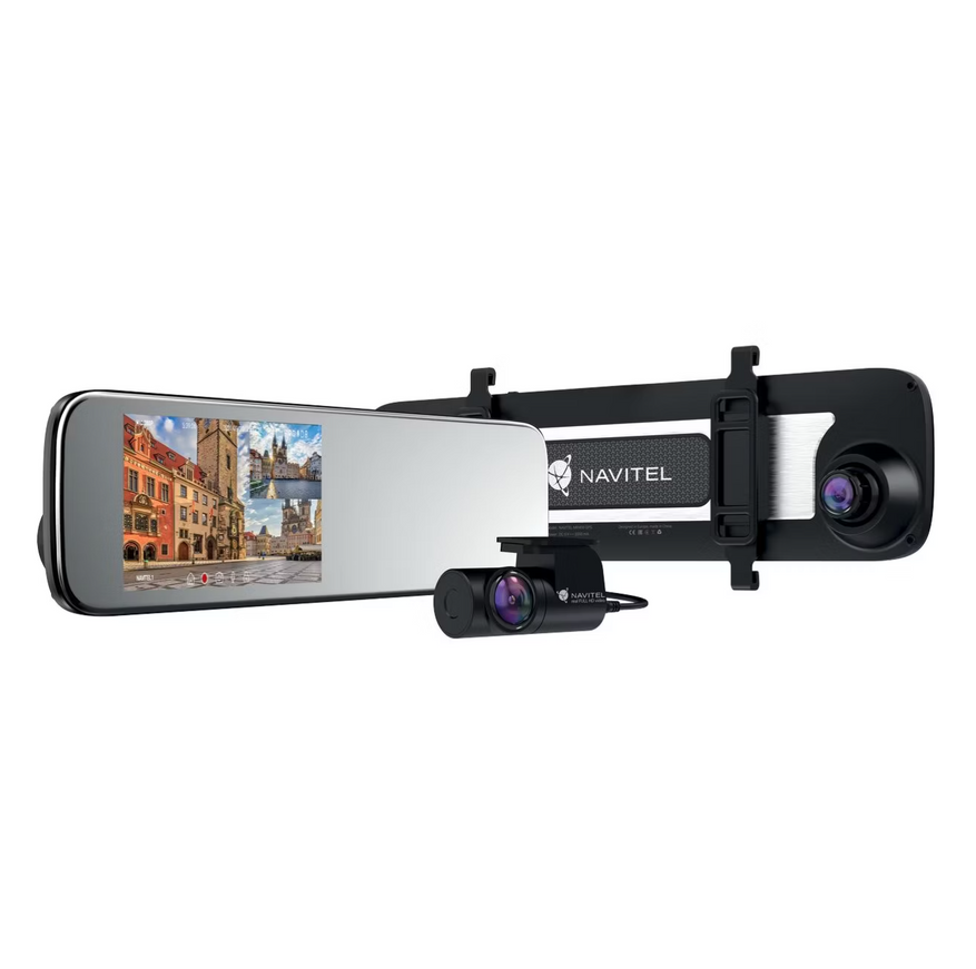Видеорегистратор в форме зеркала заднего вида Navitel MR450 GPS в первую очередь стильный аксессуар, который совмещает в себя не только функцию записи и контроля за дорожной обстановкой, но и возможность предупреждения о стационарных камерах и радарах. Navitel MR450 GPS немного выделяется на фоне других устройств своими увеличенными размерами, полностью закрывая собой зеркало заднего вида. Также в комплекте идет задняя камера, которая клеится на заднее стекло.