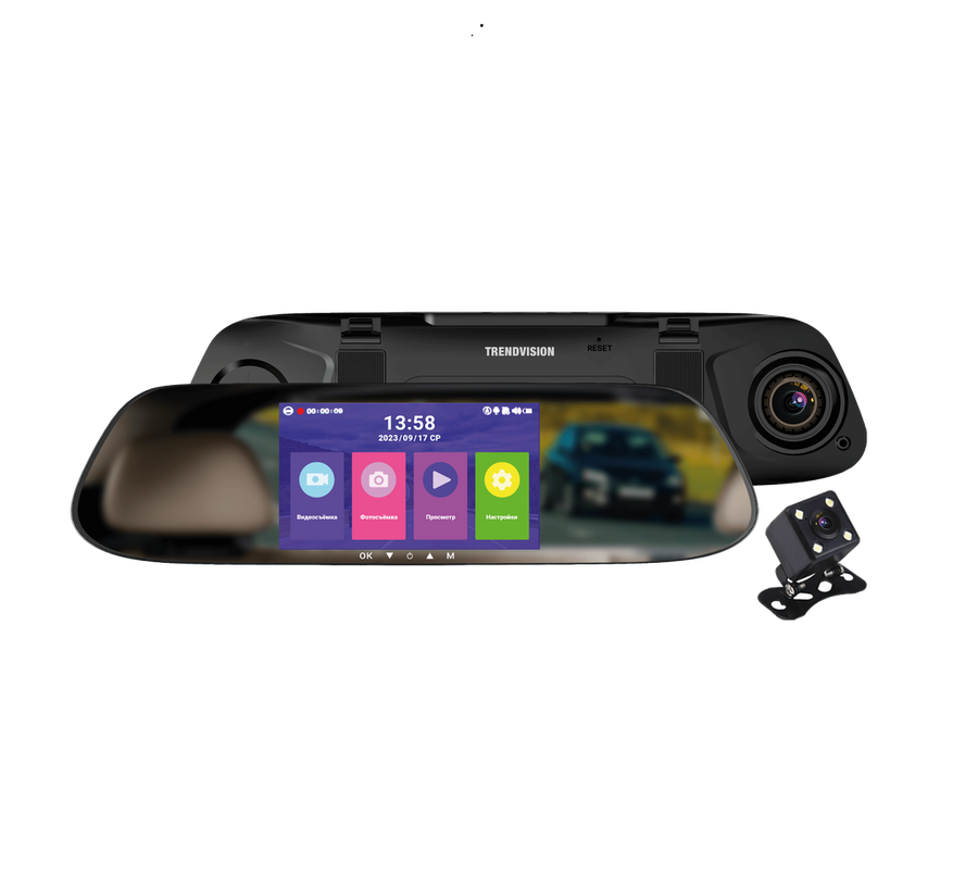 TrendVision Prime Mirror — новинка 2024 года, представляющая собой большое салонное зеркало с интегрированным по центру 5'' экраном. Среди функций хочется выделить «ScreenSaver», которая отключает вывод изображения и видеорегистратор становится привычным зеркалом заднего вида.