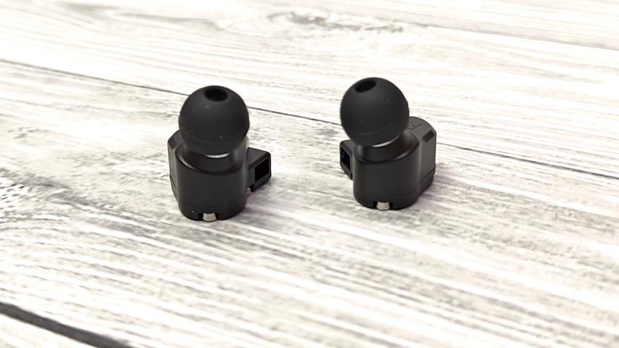 Звуководы круглые, чуть крупноватые, выполенные, как точеная деталь, только что сошедшая со станка. Бортик, держащий амбушюры крупный с острыми гранями, удерживает резиновые насадки очень плотно, сами они не соскочат. Звуковод прикрыт металлической сеткой. Вся конструкция наушников очень надежная, воспринимается как монолит и выполнена качественно.