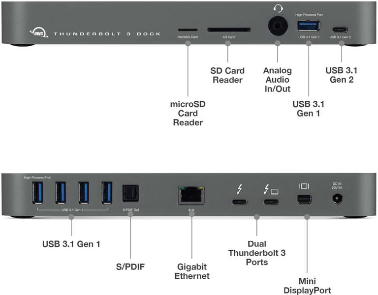 С пометкой «новинка» в каталоге OWC появилась стыковочная станция OWC Thunderbolt 3 Dock. Она выпускается в серебристом и сером вариантах. Станция предназначена для компьютеров с Windows и macOS, оснащенных интерфейсом Thunderbolt.