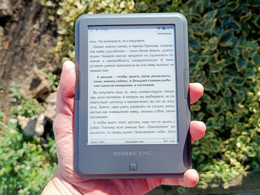 И чем выше освещение, тем лучше виден текст. А на прямом солнце яркость E-ink без подсветки будет выше яркости LCD с максимальной подсветкой.