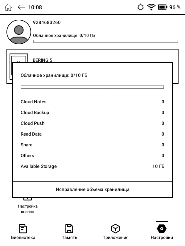 Кроме того, пройдя короткую регистрацию, можно получить 10 Гб в специальном облачном хранилище на сервере ONYX BOOX, куда можно загружать и скачивать файлы с разных устройств.