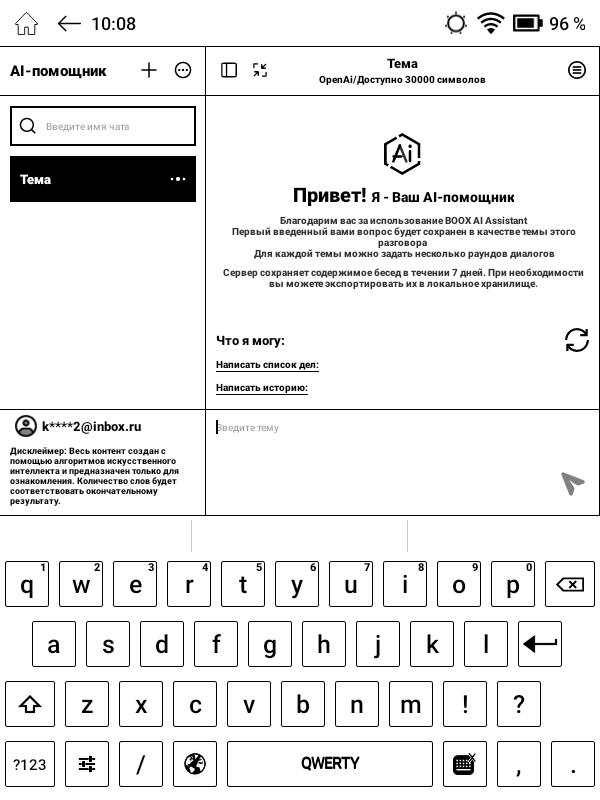 Также, среди программного обеспечения ридера, появился модный тренд всех современных гаджетов — AI-помощник, который может сделать краткий рассказ о книге по её названию, придумать историю на заданную тему, ответить на вопросы и многое другое.