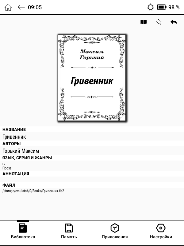 Для работы с файлами в формате электронных книг в ОНИКС БУКС Беринг 5 из коробки предустановлены две основных программы-«читалки»: