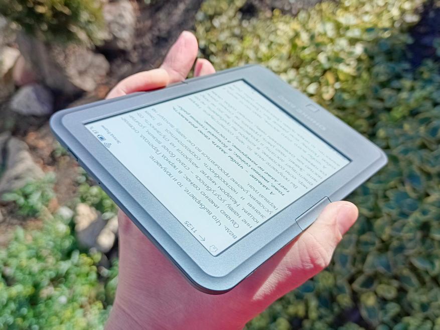 Еще одним плюсом экрана на электронной бумаге является отсутствие бликов от внешнего освещения, поэтому читать любимые произведения будет комфортно даже на ярком солнце.