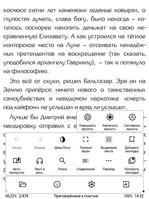 В приложениях также имеется огромное количество различных настроек: от размера шрифта до переводчиков, словарей, и голосового движка Text-To-Speech, способного зачитывать выбранную книгу или фрагмент текста, то есть по сути, превращает любую книгу в аудио.