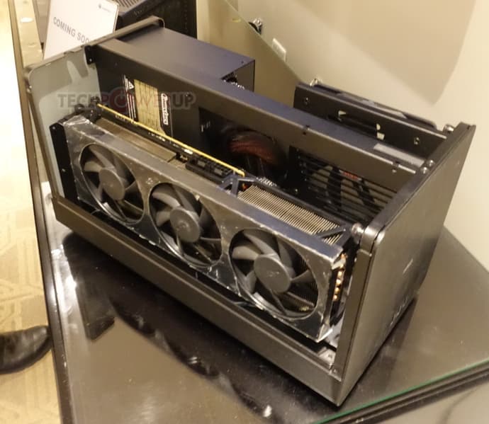 Компания PowerColor привезла на CES 2019 целый набор новых внешних видеокарт. Показали три модели: TBX-750FA, TBX-180FU и TBX-240FU. Последние две также называются Mini и Mini Pro соответственно.