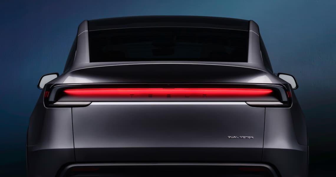 Tesla отказалась от традиционных задних фонарей в пользу сплошной полосы, которая проходит через заднюю часть. Tesla утверждает, что этот «поперечный фонарь» является «первым в своем роде задним фонарем с непрямым отражением на кузовной панели».