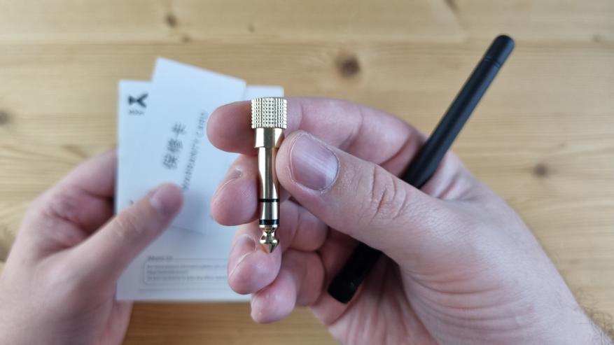 В комплекте шла документация, блютуз антенна, переходник с 3.5 на 6.35 мм, солидный на вид Type C кабель в матерчатой оболочке и стандартный уже шнур питания с заземлением. Пульта управления, к сожалению, нет и это минус.