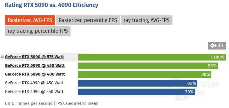 Важно, что сказалось несильно: она упала буквально на 5%. При снижении лимита мощности до 400 Вт падение составляет уже 10%. Вероятно, это всё означает, что RTX 5090 будет хорошо себя показываться в адревольтинге, но таких экспериментов ещё не было.