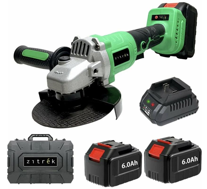 Далее, еще один бюджетный бренд инструмента. Речь идет про Zitrek и его углошлифовальную машинку для 125-миллиметровых дисков. Стоит отметить, что в отличие от других комплектаций, в данном случае весь набор заботливо уложен в жёсткий пластиковый кейс, благодаря которому удобно переносить инструмент с места на место.
