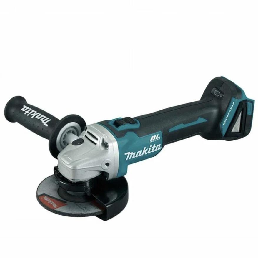 Вариант УШМ с бесщеточным двигателем и с питанием от аккумуляторных батарей от Makita. Речь идет про версию Makita LXT DGA504Z под аккумуляторы Makita 18 Вольт LXT. По ссылке версия без батарей и без сетевого зарядного устройства. Отмечу плавный пуск двигателя в данной модели, а также прорезиненную рукоятку.