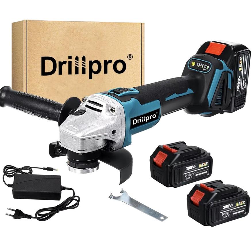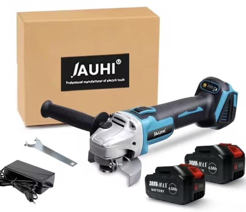 В завершение данной статьи предлагаю еще один недорогой клон популярной УШМ от бренда JAUHI. Это «болгарка» с посадкой для дисков 115/125 мм и под аккумуляторные батареи стандарта Макита 18V. Комплектация стандартная: есть защитный кожух, ручка, опционально можно взять комплект батарей и сетевую зарядку. Обратите внимание на кнопку регулировки оборотов на подошве корпуса — предусмотрено 4 режима (пониженные и стандартные обороты), что выручает при шлифовке материалов.