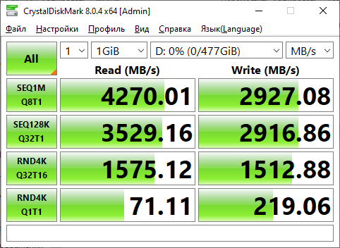 Процессор Intel Core 5-14600K на материнской плате с чипсетом Z790, выкачают всё, что может предложить данный накопитель.