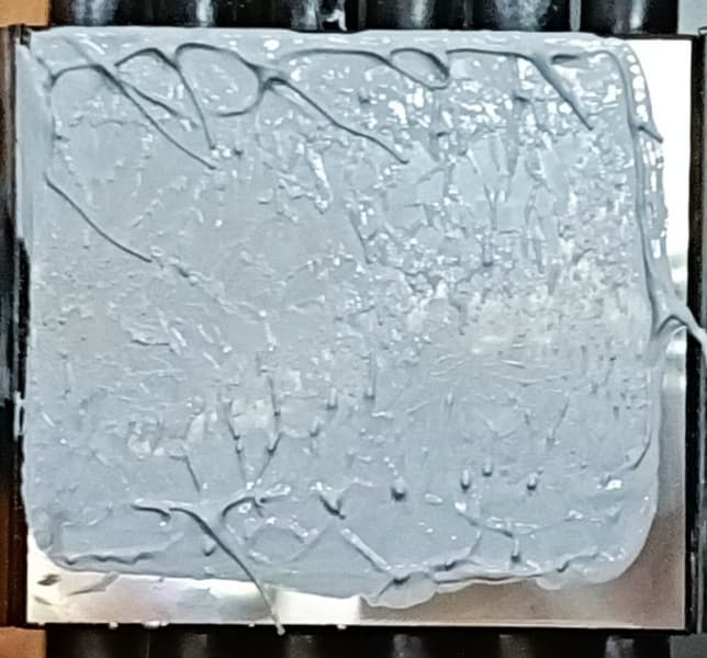 Видно, что термопаста распределилась тонким слоем почти по всей плоскости крышки процессора, а ее избыток выдавился по краям. Пятно плотного контакта большое.