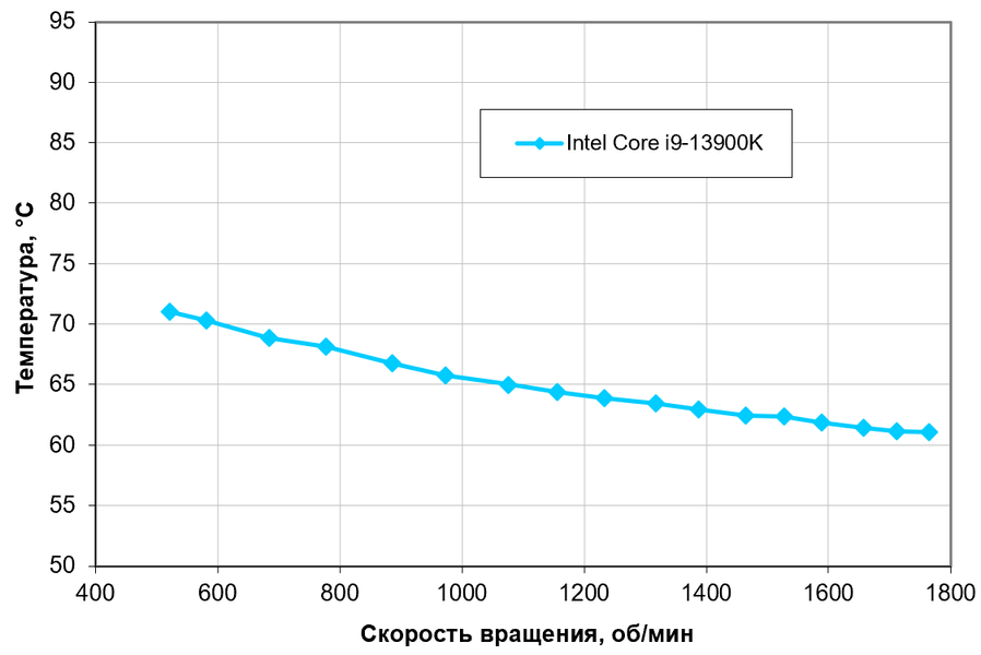 Определение зависимости температуры процессора Intel Core i9-13900K при его полной загрузке от скорости вращения вентилятора(-ов) кулера