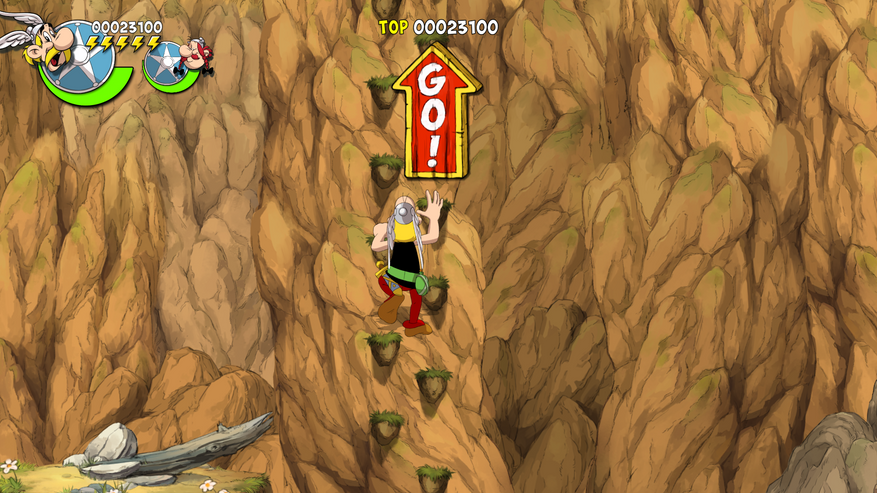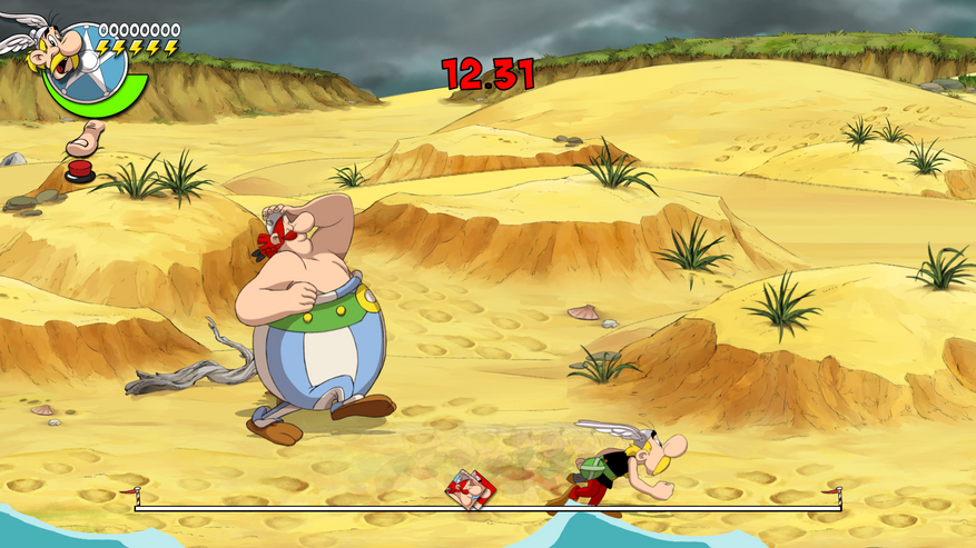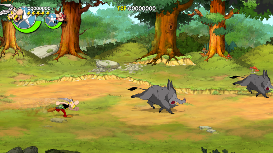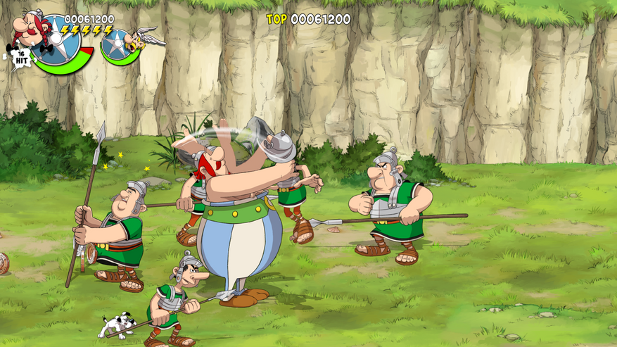 Наверняка будут те, кто скажет, это дань прошлому, я же отвечу, что это искусственное растягивание прохождения. Под управлением игрока два персонажа. Быстрый и ловкий Астерикс или медленный, но сильный Обеликс. Но есть один неприятный момент. Во время боя игрок может сменить персонажа, но только если тот не получает урона. А т. к. в игре врагов много, не редки случаи попадания в окружение, отчего сменить персонажа нельзя и приходится начинать уровень с самого начала.
