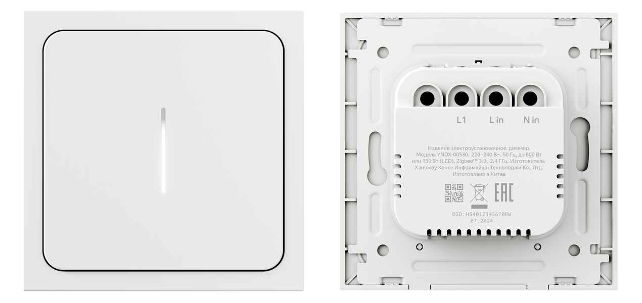 Для подключения диммера к умному дому нужна «Яндекс Станция» с поддержкой Zigbee или хаб Яндекса. Устройство устанавливается в стандартный круглый подрозетник. Важно, что для подключения диммера необходим нейтральный провод.