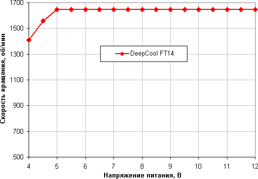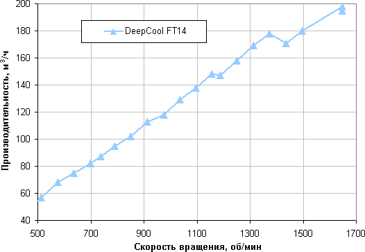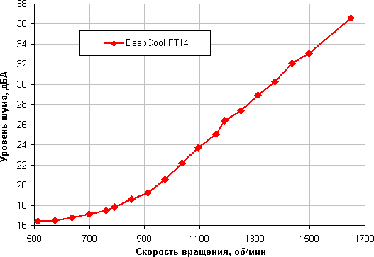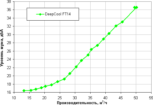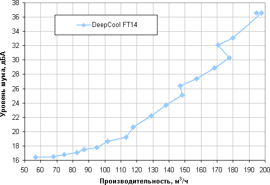 Видно, что по этому параметру вентилятор DeepCool FT14 вышел в лидеры с хорошим отрывом.