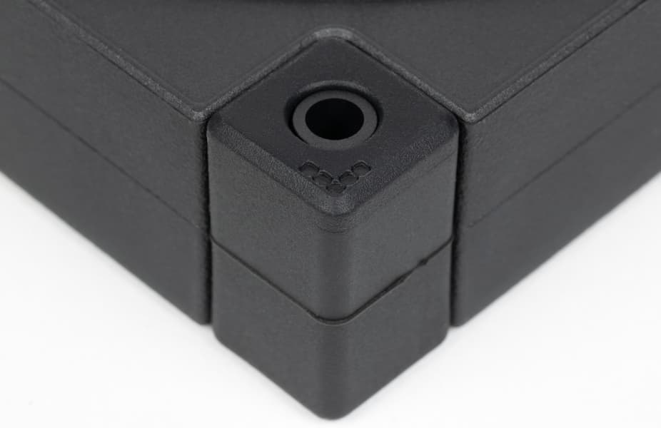 По замыслу разработчиков, это должно обеспечивать виброразвязку вентилятора от места крепления. Однако если прикинуть соотношение массы вентилятора к жесткости вставок, то становится понятно, что резонансная частота конструкции получается очень высокой, то есть практически никакой эффективной виброразвязки быть не может. Кроме того, гнезда, куда вворачиваются крепежные саморезы, являются частью рамки вентилятора, поэтому вибрация от вентилятора будет через саморезы без помех передаваться на то, на чем закреплен вентилятор. В итоге, такую конструкцию можно рассматривать только в качестве элемента дизайна вентилятора.