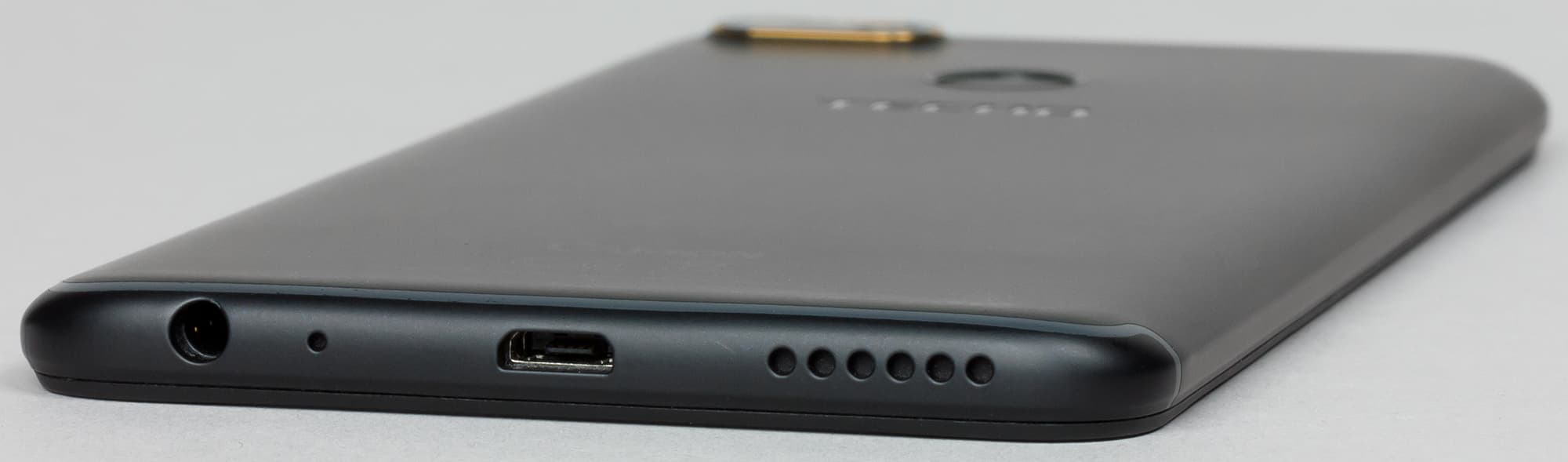Верхний торец ничем не занят, а в нижнем сгрудились и 3,5-миллиметровый аудиовыход, и микрофон, и разъем Micro-USB, и основной динамик.