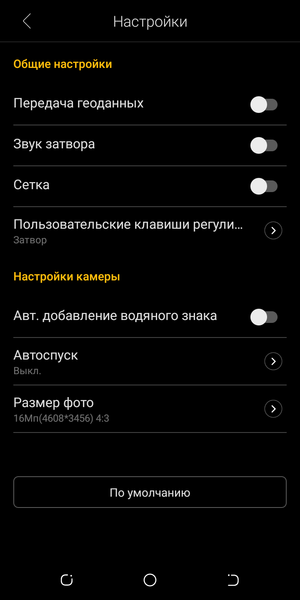 Основная камера одиночная, здесь используется матрица с разрешением 16 Мп и объектив с диафрагмой f/1,8. Есть вполне адекватный автофокус и яркая четырехсегментная вспышка. Меню настроек простое, отдельного ручного режима нет, штатной возможности сохранения снимков в RAW тоже нет.