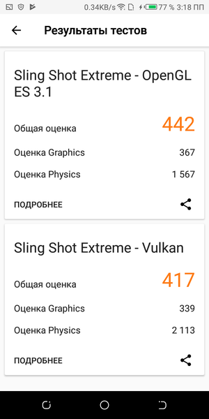 | 3DMark Ice Storm Sling Shot ES 3.1 (больше — лучше) | 442 | 110 | 281 | 306 | 448 |