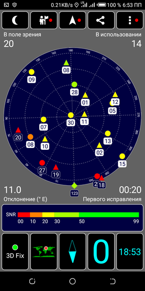 Навигационный модуль работает с GPS (с A-GPS) и с отечественной Глонасс, без поддержки китайской Beidou. Первые спутники при холодном старте обнаруживаются примерно в течение первой минуты. Датчик магнитного поля, необходимый для работы навигационных программ, в аппарате установлен.